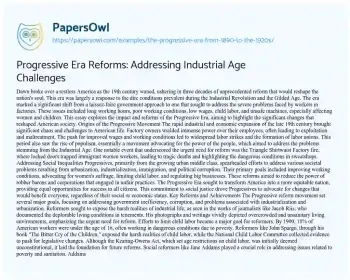 Progressive Era Reforms: Addressing Industrial Age Challenges. (2021, Feb 26). Retrieved from https://hub.papersowl.com/examples/the-progressive-era-from-1890-to-the-1920s/