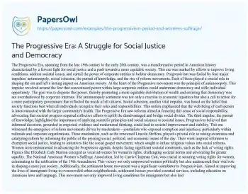 The Progressive Era: A Struggle for Social Justice and Democracy. (2023, Mar 25). Retrieved from https://hub.papersowl.com/examples/the-progressivism-period-and-womens-suffrage/