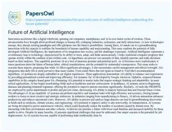 Future of Artificial Intelligence. (2023, Jun 17). Retrieved from https://hub.papersowl.com/examples/the-pros-and-cons-of-artificial-intelligence-unleashing-the-future-potential/