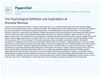 The Psychological Definition and Implications of Anorexia Nervosa. (2024, May 28). Retrieved from https://hub.papersowl.com/examples/the-psychological-definition-and-implications-of-anorexia-nervosa/