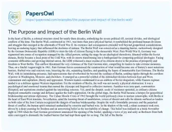 The Purpose and Impact of the Berlin Wall. (2024, Jun 17). Retrieved from https://hub.papersowl.com/examples/the-purpose-and-impact-of-the-berlin-wall/