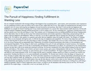 The Pursuit of Happiness: Finding Fulfillment in Wanting Less