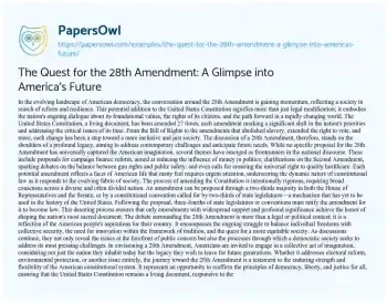 The Quest for the 28th Amendment: A Glimpse into America's Future. (2024, Mar 18). Retrieved from https://hub.papersowl.com/examples/the-quest-for-the-28th-amendment-a-glimpse-into-americas-future/
