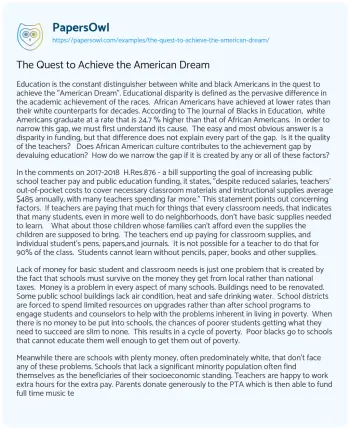 The Quest to Achieve the American Dream. (2019, Jan 19). Retrieved from https://hub.papersowl.com/examples/the-quest-to-achieve-the-american-dream/