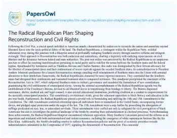 The Radical Republican Plan: Shaping Reconstruction and Civil Rights. (2024, May 12). Retrieved from https://hub.papersowl.com/examples/the-radical-republican-plan-shaping-reconstruction-and-civil-rights/