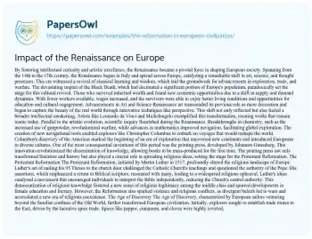 Impact of the Renaissance on Europe. (2021, Apr 27). Retrieved from https://hub.papersowl.com/examples/the-reformation-in-european-civilization/