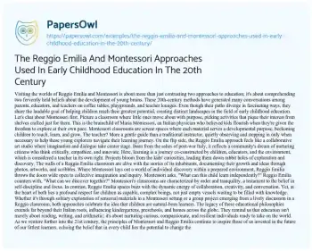 The Reggio Emilia And Montessori Approaches Used In Early Childhood Education In The 20th Century. (2024, Apr 07). Retrieved from https://hub.papersowl.com/examples/the-reggio-emilia-and-montessori-approaches-used-in-early-childhood-education-in-the-20th-century/