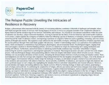 In conclusion, relapse serves as a poignant reminder of the complexities inherent in the journey of recovery, where individuals navigate a labyrinth of challenges and triumphs on the path to well-being. By unraveling the intricacies of relapse and adopting a holistic approach that addresses its psychological, physiological, and environmental determinants, clinicians and individuals alike can cultivate resilience and empower sustainable recovery. Through tailored interventions, social support, and ongoing vigilance, the cycle of relapse can be interrupted, paving the way for a life of fulfillment and flourishing.