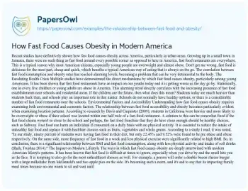 How Fast Food Causes Obesity in Modern America. (2019, Jun 01). Retrieved from https://hub.papersowl.com/examples/the-relationship-between-fast-food-and-obesity/