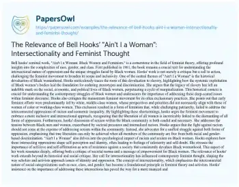 The Relevance of Bell Hooks' "Ain't I a Woman": Intersectionality and Feminist Thought. (2024, Jun 28). Retrieved from https://hub.papersowl.com/examples/the-relevance-of-bell-hooks-aint-i-a-woman-intersectionality-and-feminist-thought/