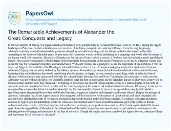 The Remarkable Achievements of Alexander the Great: Conquests and Legacy. (2024, May 21). Retrieved from https://hub.papersowl.com/examples/the-remarkable-achievements-of-alexander-the-great-conquests-and-legacy/
