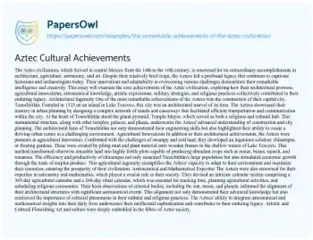 Aztec Cultural Achievements. (2024, Jul 06). Retrieved from https://hub.papersowl.com/examples/the-remarkable-achievements-of-the-aztec-civilization/