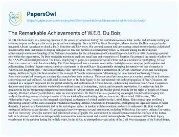 The Remarkable Achievements of W.E.B. Du Bois. (2024, Jun 01). Retrieved from https://hub.papersowl.com/examples/the-remarkable-achievements-of-w-e-b-du-bois/