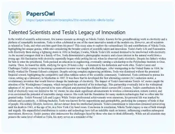 Talented Scientists and Tesla’s Legacy of Innovation. (2020, Apr 20). Retrieved from https://hub.papersowl.com/examples/the-remarkable-nikola-tesla/