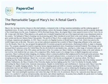 The Remarkable Saga of Macy's Inc: A Retail Giant's Journey. (2024, Mar 12). Retrieved from https://hub.papersowl.com/examples/the-remarkable-saga-of-macys-inc-a-retail-giants-journey/