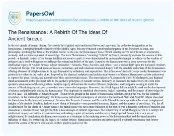 The Renaissance : A Rebirth Of The Ideas Of Ancient Greece. (2024, Apr 29). Retrieved from https://hub.papersowl.com/examples/the-renaissance-a-rebirth-of-the-ideas-of-ancient-greece/