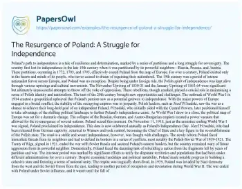 The Resurgence of Poland: A Struggle for Independence. (2024, May 28). Retrieved from https://hub.papersowl.com/examples/the-resurgence-of-poland-a-struggle-for-independence/
