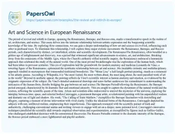 Art and Science in European Renaissance. (2021, Apr 24). Retrieved from https://hub.papersowl.com/examples/the-revival-and-rebirth-in-europe/