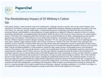 The Revolutionary Impact of Eli Whitney's Cotton Gin. (2024, May 12). Retrieved from https://hub.papersowl.com/examples/the-revolutionary-impact-of-eli-whitneys-cotton-gin/