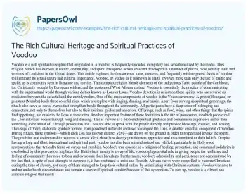 The Rich Cultural Heritage and Spiritual Practices of Voodoo. (2024, May 12). Retrieved from https://hub.papersowl.com/examples/the-rich-cultural-heritage-and-spiritual-practices-of-voodoo/