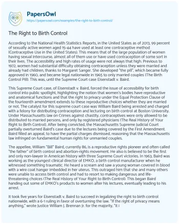 The Right to Birth Control. (2019, Nov 24). Retrieved from https://hub.papersowl.com/examples/the-right-to-birth-control/