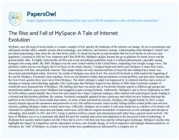 Order now Its highly customizable profiles and social networking capabilities made it a cultural phenomenon, especially among teenagers and young adults. By 2005, MySpace was the most visited website in the United States, surpassing even Google in page views.