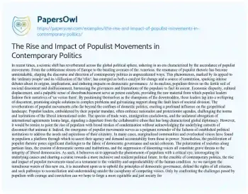 The Rise and Impact of Populist Movements in Contemporary Politics. (2024, Mar 18). Retrieved from https://hub.papersowl.com/examples/the-rise-and-impact-of-populist-movements-in-contemporary-politics/