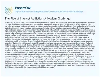The Rise of Internet Addiction: A Modern Challenge. (2025, May 24). Retrieved from https://hub.papersowl.com/examples/the-rise-of-internet-addiction-a-modern-challenge/