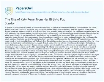 The Rise of Katy Perry: From Her Birth to Pop Stardom. (2024, May 28). Retrieved from https://hub.papersowl.com/examples/the-rise-of-katy-perry-from-her-birth-to-pop-stardom/