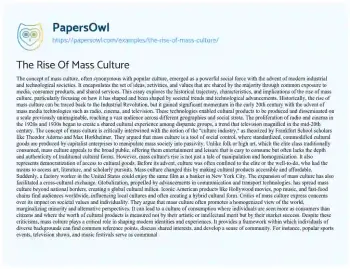The Rise Of Mass Culture. (2024, Apr 22). Retrieved from https://hub.papersowl.com/examples/the-rise-of-mass-culture/
