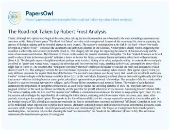 The Road not Taken by Robert Frost Analysis. (2021, Apr 29). Retrieved from https://hub.papersowl.com/examples/the-road-not-taken-by-robert-frost-analysis/