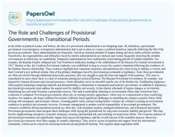 The Role and Challenges of Provisional Governments in Transitional Periods. (2024, Jul 16). Retrieved from https://hub.papersowl.com/examples/the-role-and-challenges-of-provisional-governments-in-transitional-periods/