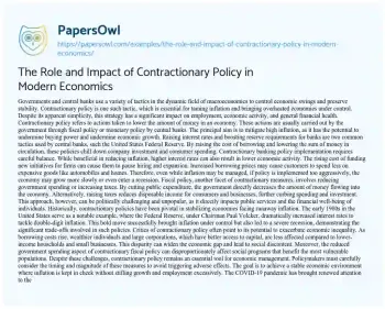 The Role and Impact of Contractionary Policy in Modern Economics. (2024, Jun 01). Retrieved from https://hub.papersowl.com/examples/the-role-and-impact-of-contractionary-policy-in-modern-economics/