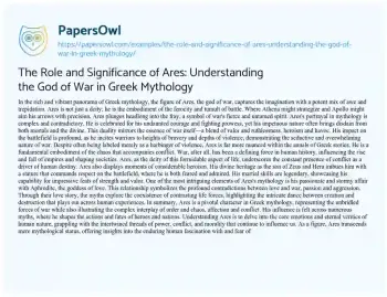 The Role and Significance of Ares: Understanding the God of War in Greek Mythology. (2024, May 21). Retrieved from https://hub.papersowl.com/examples/the-role-and-significance-of-ares-understanding-the-god-of-war-in-greek-mythology/