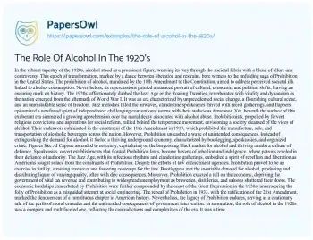 The Role Of Alcohol In The 1920’s