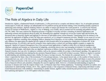 The Role of Algebra in Daily Life. (2024, Dec 27). Retrieved from https://hub.papersowl.com/examples/the-role-of-algebra-in-daily-life/
