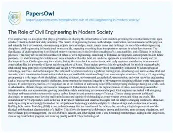 The Role of Civil Engineering in Modern Society. (2025, Mar 30). Retrieved from https://hub.papersowl.com/examples/the-role-of-civil-engineering-in-modern-society/