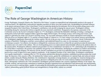 The Role of George Washington in American History. (2024, May 28). Retrieved from https://hub.papersowl.com/examples/the-role-of-george-washington-in-american-history/