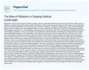 The Role of Militarism in Shaping Political Landscapes. (2024, Apr 01). Retrieved from https://hub.papersowl.com/examples/the-role-of-militarism-in-shaping-political-landscapes/