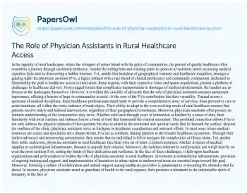 The Role of Physician Assistants in Rural Healthcare Access. (2024, Mar 18). Retrieved from https://hub.papersowl.com/examples/the-role-of-physician-assistants-in-rural-healthcare-access/