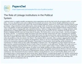 The Role of Linkage Institutions in the Political System. (2021, Nov 30). Retrieved from https://hub.papersowl.com/examples/the-role-of-political-parties/