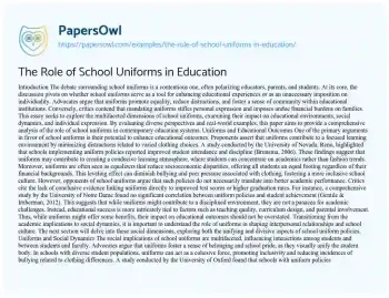 The Role of School Uniforms in Education. (2024, Dec 27). Retrieved from https://hub.papersowl.com/examples/the-role-of-school-uniforms-in-education/