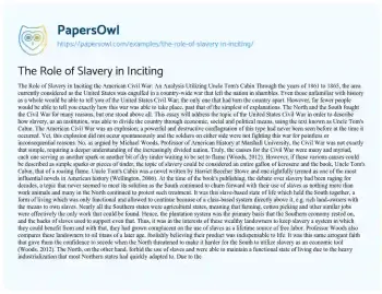 The Role of Slavery in Inciting the American Civil War: An Analysis Utilizing Uncle Tom's Cabin