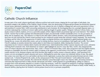 Catholic Church Influence. (2020, Jan 06). Retrieved from https://hub.papersowl.com/examples/the-role-of-the-catholic-church/