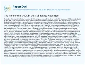 The Role of the SNCC in the Civil Rights Movement. (2024, Jun 17). Retrieved from https://hub.papersowl.com/examples/the-role-of-the-sncc-in-the-civil-rights-movement/