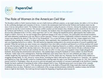 The Role of Women in the American Civil War. (2021, Mar 18). Retrieved from https://hub.papersowl.com/examples/the-role-of-women-in-the-civil-war/