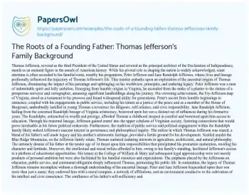 The Roots of a Founding Father: Thomas Jefferson's Family Background. (2024, Mar 18). Retrieved from https://hub.papersowl.com/examples/the-roots-of-a-founding-father-thomas-jeffersons-family-background/