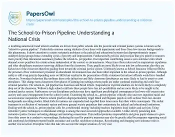 The School-to-Prison Pipeline: Understanding a National Crisis. (2024, Jul 06). Retrieved from https://hub.papersowl.com/examples/the-school-to-prison-pipeline-understanding-a-national-crisis/