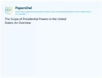 The Scope of Presidential Powers in the United States: An Overview. (2024, Jun 17). Retrieved from https://hub.papersowl.com/examples/the-scope-of-presidential-powers-in-the-united-states-an-overview/