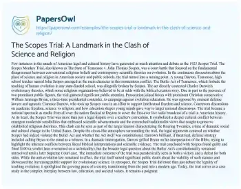 The Scopes Trial: A Landmark in the Clash of Science and Religion. (2024, May 12). Retrieved from https://hub.papersowl.com/examples/the-scopes-trial-a-landmark-in-the-clash-of-science-and-religion/
